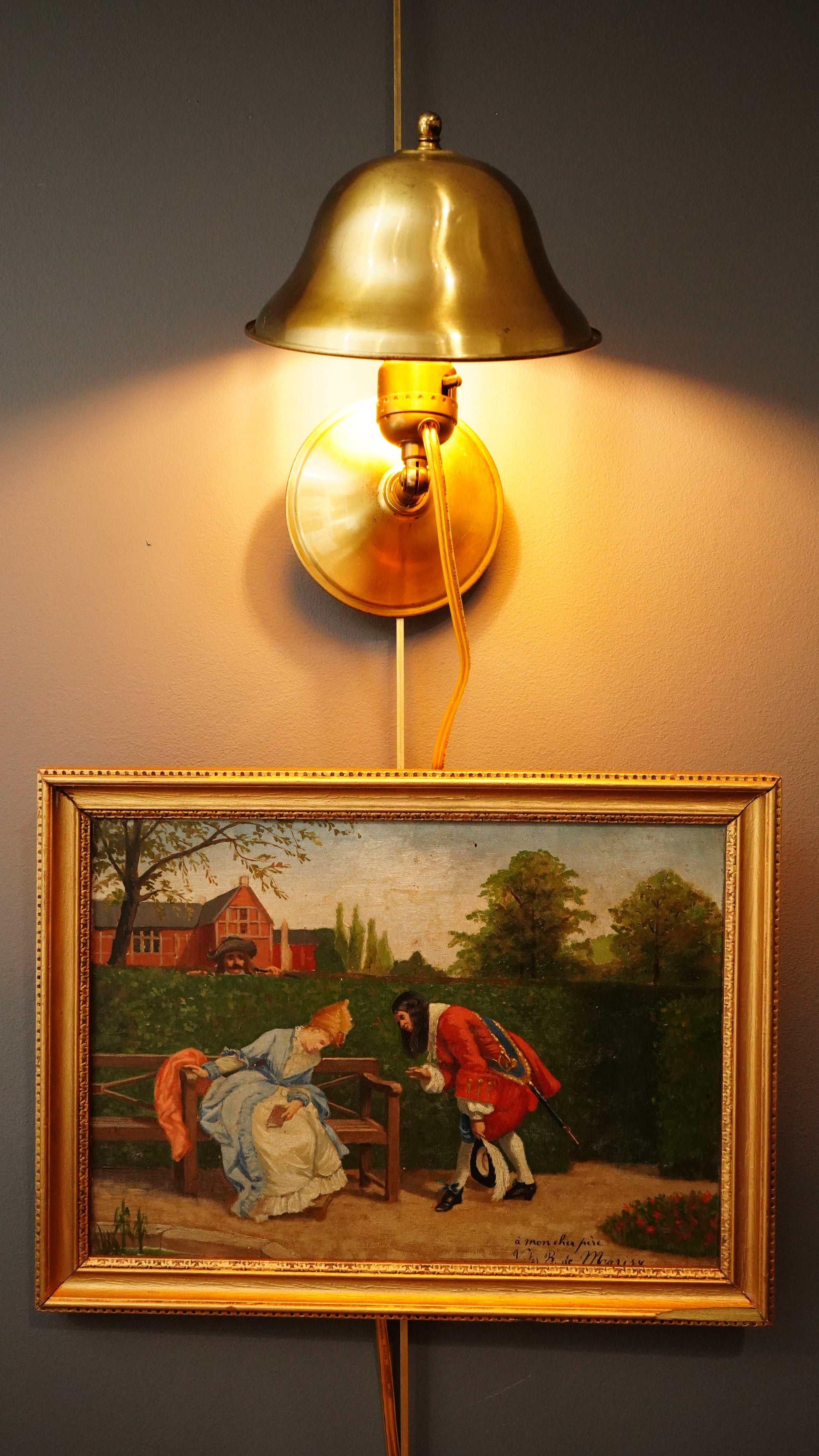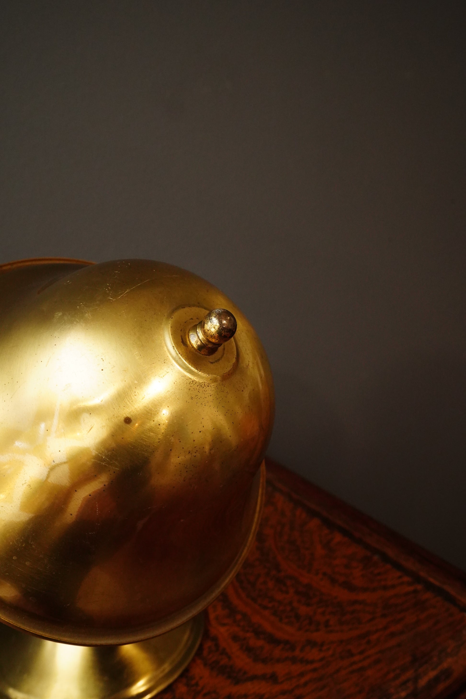No notable cracks observed; well-preserved example of mid-century American brass lighting.