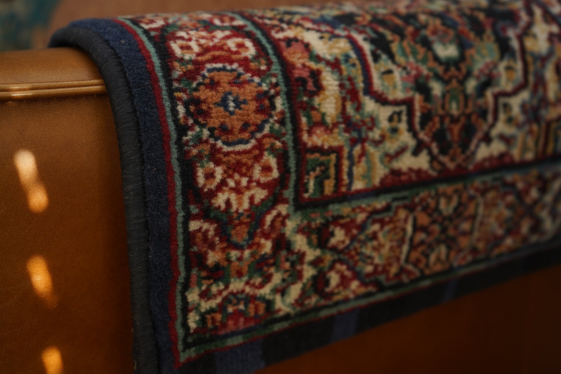 Very good vintage condition with a plush and even pile. Minor edge and serging wear from normal use. Lies flat with strong color and clear pattern. Clean and ready to place. See photos.